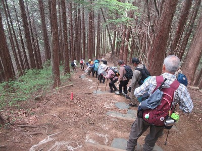 階段、岩場、根っ子有りで、ちょっと手強い山だった。